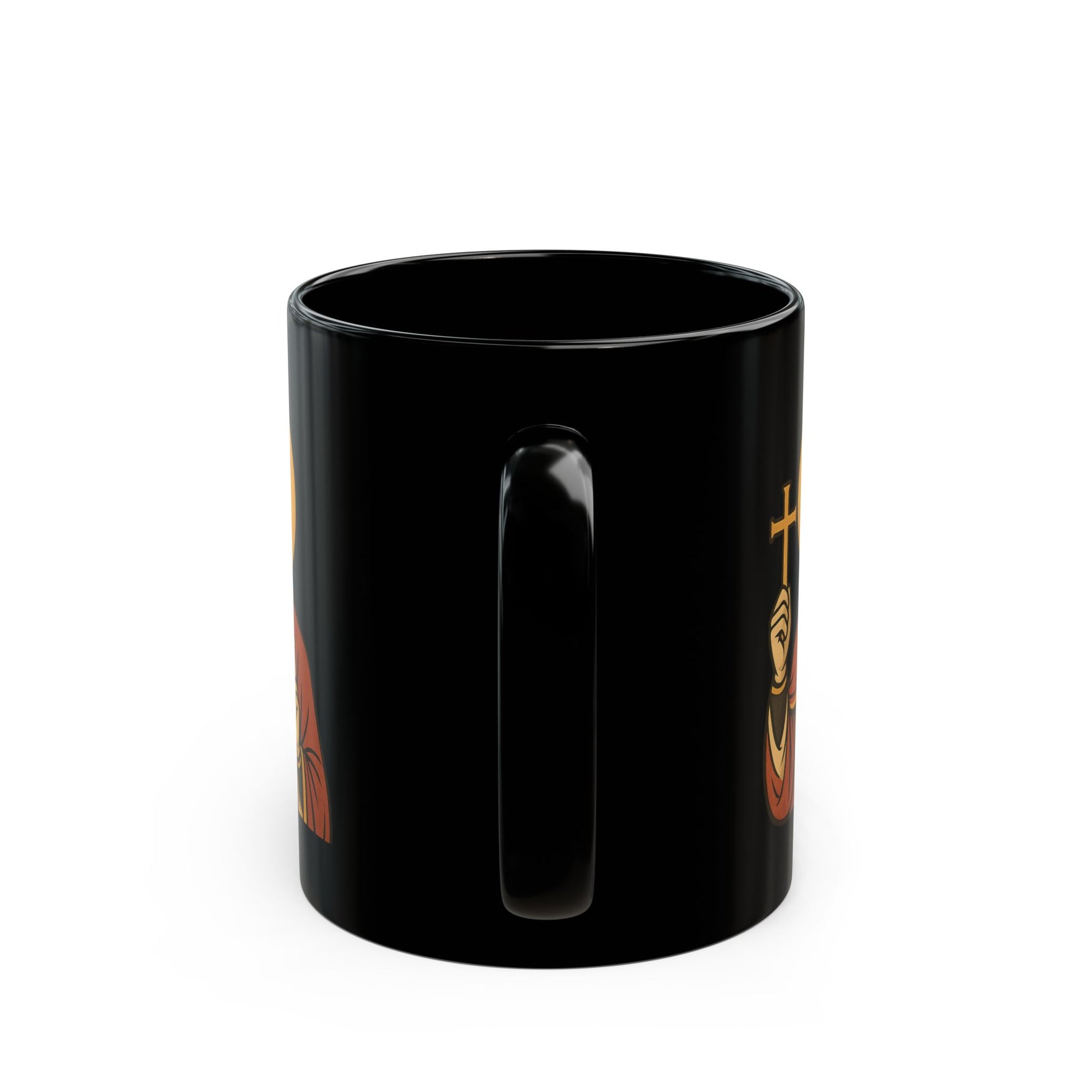 Not a mug. A vessel. A black-glazed relic forged to hold the sacred brew—be it the morning sermon of caffeine or the evening hymn of tea. Its glossy ceramic form carries your daily rites with weight and reverence, while the vibrant print transforms it into a relic worthy of worship.