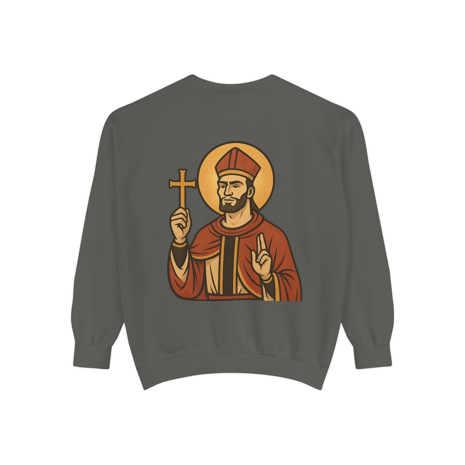 The playful back graphic serves as a subtle scripture, a reminder that even the most humble cloak can carry meaning. Perfect for everyday wear, sacred lounging, or gifting to fellow disciples during seasonal gatherings and holy feasts like Thanksgiving.