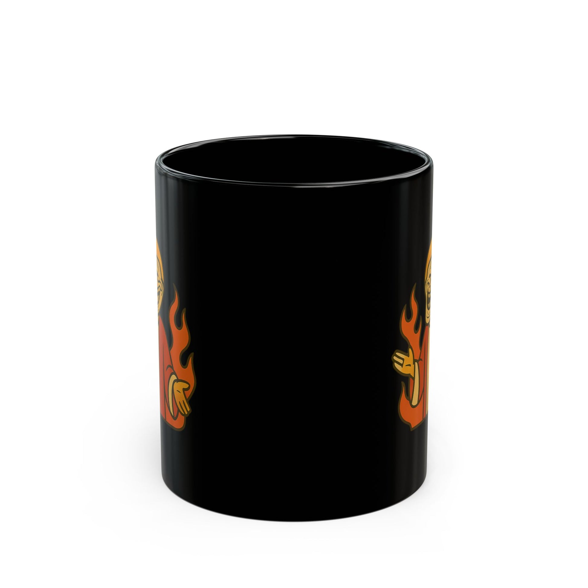 Not a mug. A vessel. A black-glazed relic forged to hold the sacred brew—be it the morning sermon of caffeine or the evening hymn of tea. Its glossy ceramic form carries your daily rites with weight and reverence, while the vibrant print transforms it into a relic worthy of worship.